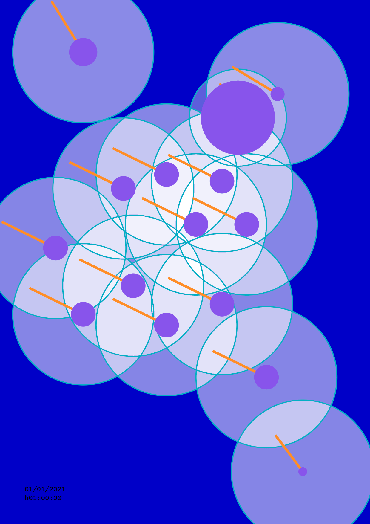 Each section stretch through different time ranges (hours, weeks, year) and space scales (the whole city or specific locations) exploring a variety of reading experiences, in which the data are dilated through pages or hyper-concentrated.